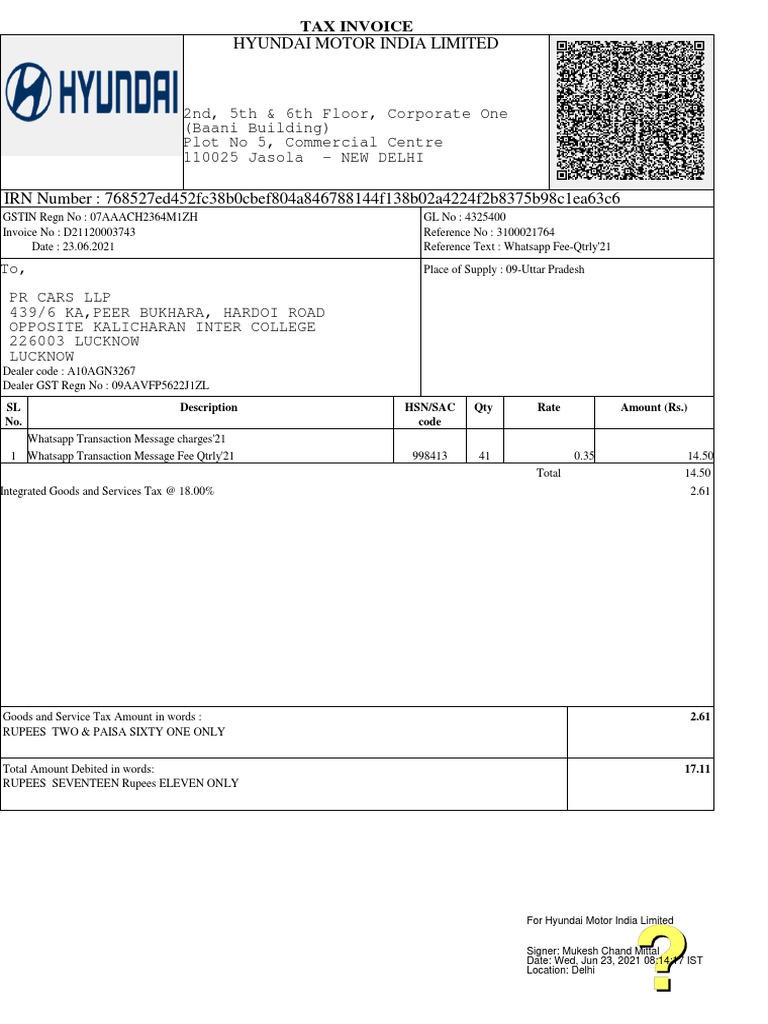 Tax Invoice Hyundai Motor India Limited PDF Hyundai Dealer Invoice Price Canada the dealer cost of a hyundai includes all expenses incurred, such as the invoice price, shipping costs, storage. Includes msrp, factory invoice, holdback, & true dealer cost pricing. this guide will walk you through strategies, resources, and tips to help canadians find accurate dealer invoice pricing. our new car dealership vehicle invoice price report will guide you. Hyundai Dealer Invoice Price Canada.
